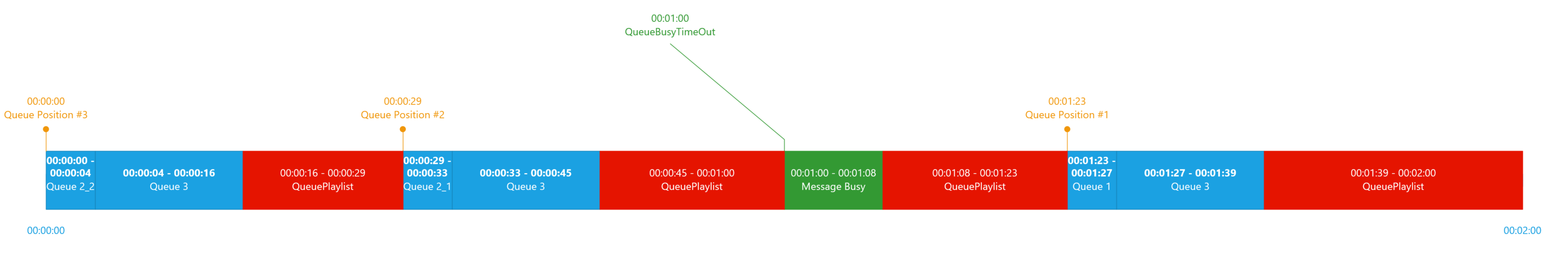 The item “Message Overflow” will be played when the queue is full (size can be configured). The work flow must be “QueueOverflow”.
